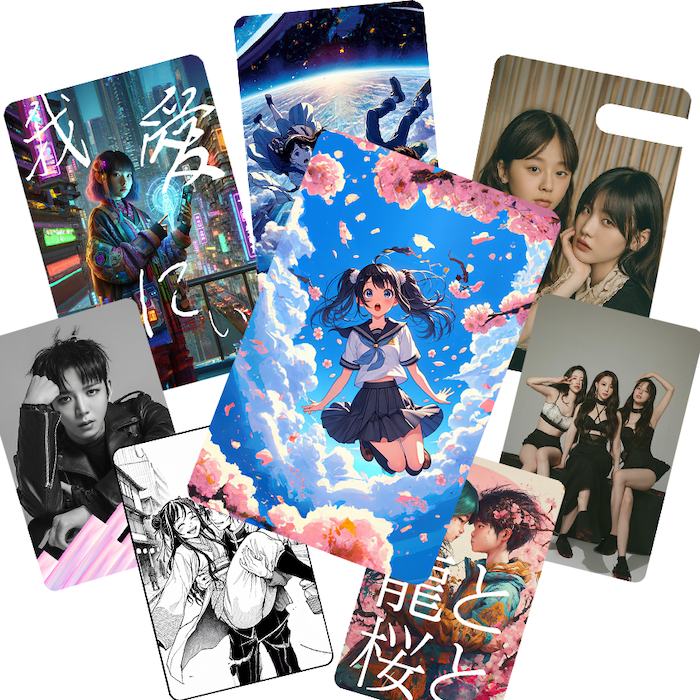 来場者特典の王道です。複数種類のブロマイドや生写真をランダムで配布することで、「誰の写真が当たるか」というワクワク感が生まれます。推し活文化との相性が抜群で、SNSでの「交換募集」投稿を通じた口コミ効果も期待できます。印刷コストが比較的安く、制作リードタイムも短いのが利点です。