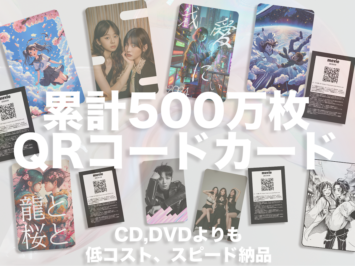 QR動画カードは、カードに印刷されたQRコードをスマートフォンで読み取ると、ブラウザ上で動画がストリーミング再生される方式のカードです。端末にファイルが保存されないため、不正コピーに対する耐性が高いことが最大の特徴です。